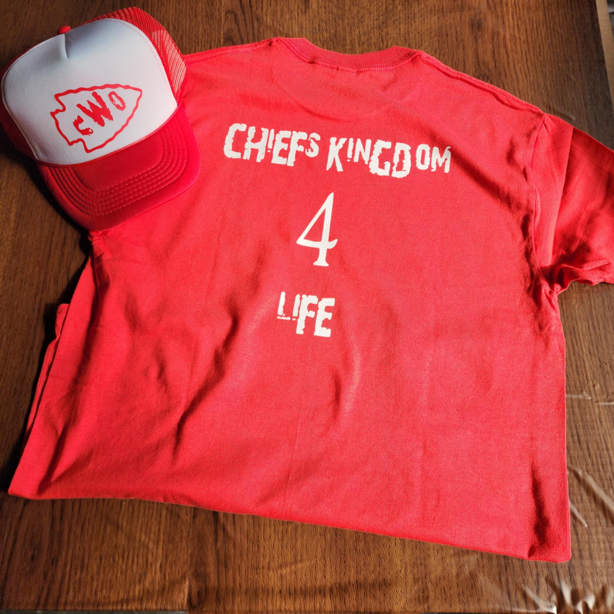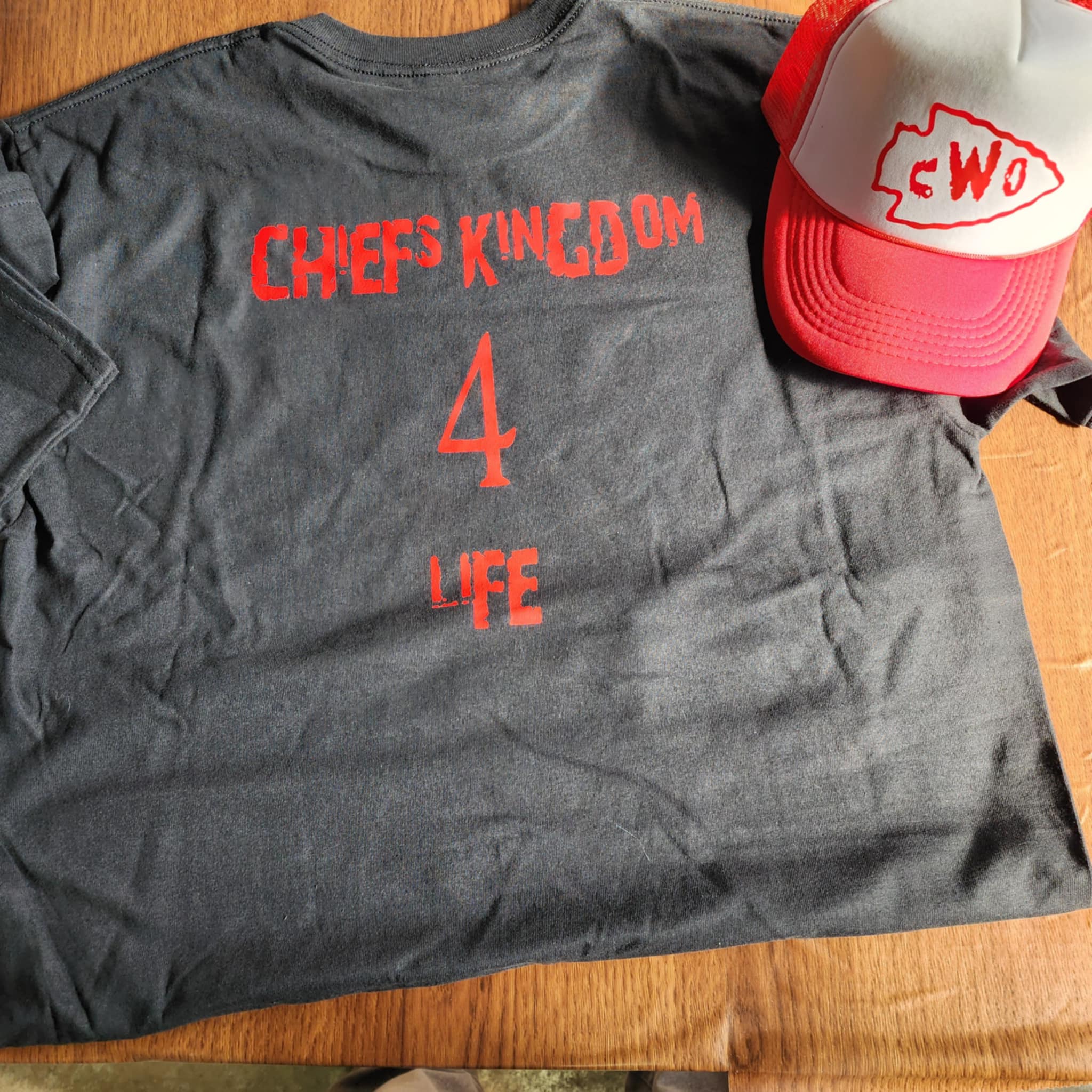 I have created a design with slight input from my husband that mixes good old fashioned "Rasslin" with our Love of Kansas City Champion Football!